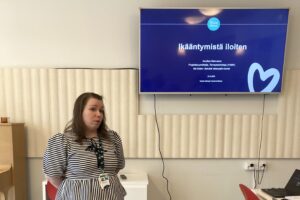 Projektisuunnittelija Anuliisa Salovaara Oma Hämeen Ikä Iloiten -hankkeesta kertoi Seniorikahvilassa 23.3.2026 hyvinvoinnin ja terveyden edistämisestä. Hyvinvointia voi edistää esimerkiksi luonnon, kulttuurin, elintapojen, sosiaalisten suhteiden ja osallisuuden kautta. Ravinnolla on keskeinen vaikutus hyvinvointiin ja terveyteen. Ruokavalio edistää terveyttä esimerksi silloin, kun se sisältää runsaasti kasviksia, marjoja ja hedelmiä.