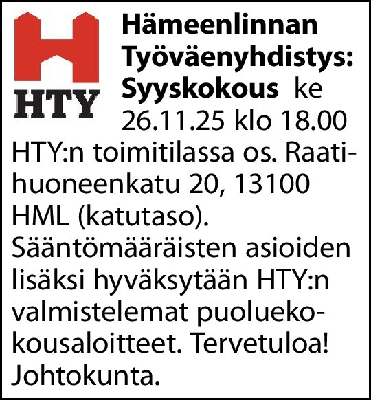 Kun Seniorikahvilassa HTY:llä (Raatihuoneenkatu 20, Hämeenlinna) maanantaina 24.11. kello 13 pelataan bingoa, niin tarjolla on kahvia ja pullaa – maksu vapaaehtoinen. Tervetuloa mukaan!