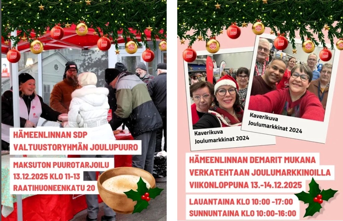 Hämeenlinnan Työväenyhdistyksen syyskokous 26.11.2025 hyväksyi 11 aloitetta lähetettäväksi SDP:n puoluekokoukseen 2026. Aloitteiden otsikot ovat seuraavat: