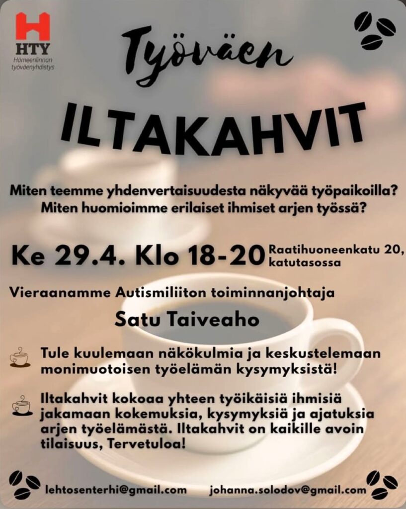 Hämeenlinnan Työväenyhdistys on varannut 30 lippua Hämeenlinnan Uuden Kesäteatterin kesän 2026 esitykseen ”Sitä saa mitä tilaa” torstain 2.7.2026 klo 18 Kaupunginpuistossa. Esityksen hinta on 35€/jäsen (yksi lippu/jäsen), 42 €/ei-jäsen. Lisätietoa esityksestä löytyy osoitteesta https://www.hukteatteri.fi/esitykset.
