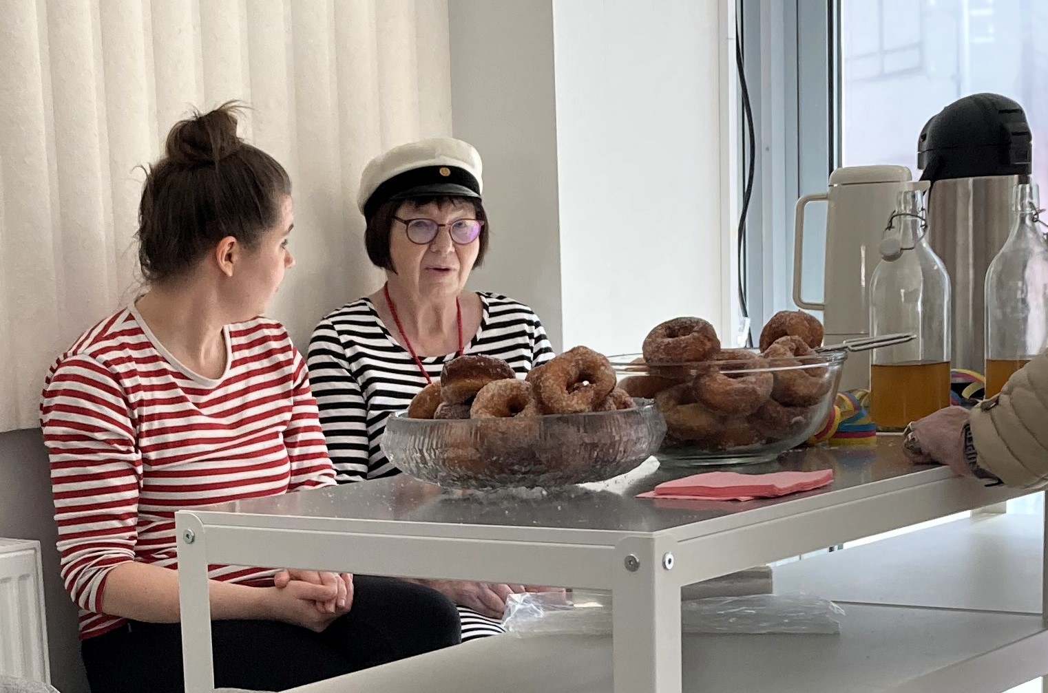 HTY:n toimitilassa on tarjolla munkkeja, simaa ja kahvia vapunpäivänä ennen torilla olevaa vappujuhlaa.