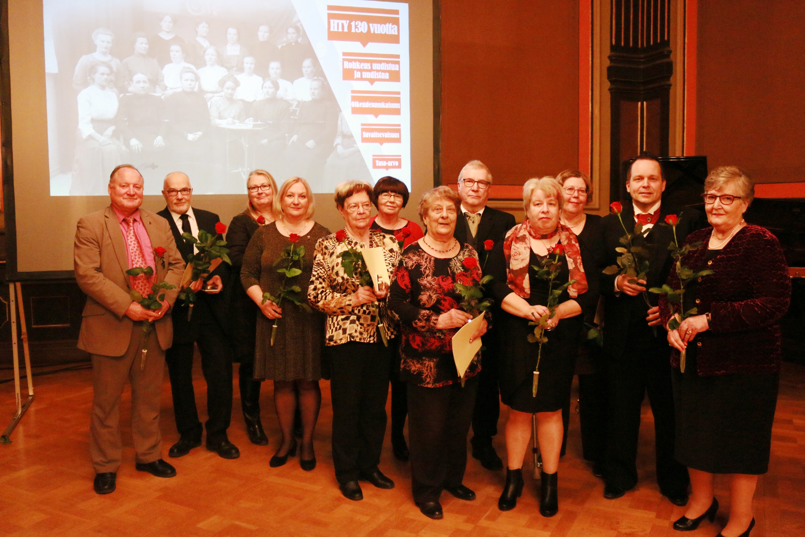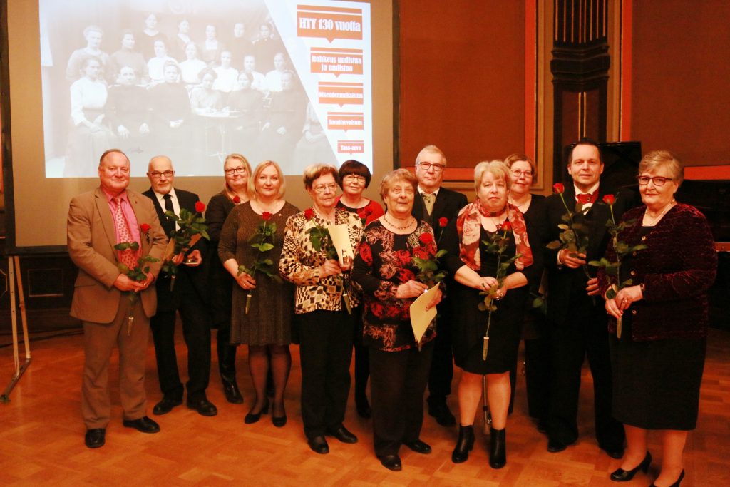 HTY muisti juhlassa Rafael Paasio -mitalilla seuraavia henkilöitä: Irja Appelroth, Jukka Jokinen, Anna-Liisa Lahti, Anna-Liisa Torvinen ja Pirjo Virtanen. SDP:n kultaiset ansiomerkit sai neljä pitkäaikaista yhdistyksemme johtokunnan jäsentä: Ossi Lapisto, Marita Pekkarinen, Ulla Pullola ja Hannu Tuominen. Lisäksi kukitettiin paikalla olleet HTY:n aiemmat puheenjohtajat.