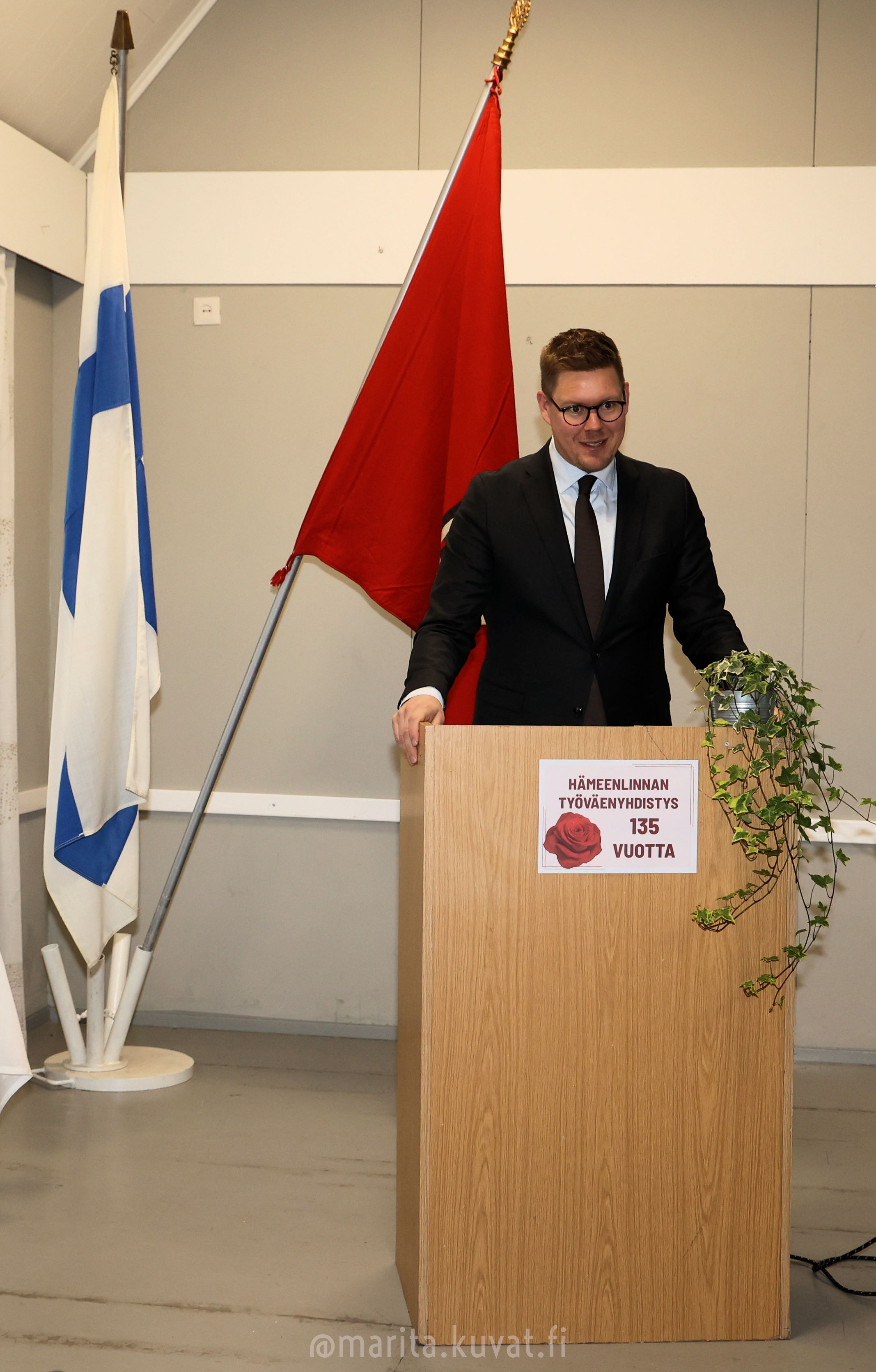 SDP:n puheenjohtaja Antti Lindtman piti juhlapuheen.